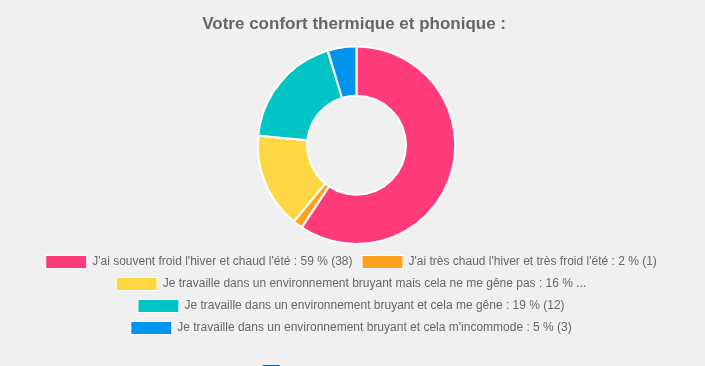 • Conditions climatiques : un problème récurrent est l’inconfort thermique ; de nombreux agents déclarent avoir souvent froid l’hiver et chaud l’été dans leurs locaux