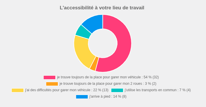 • Abords et stationnement : les abords sont généralement jugés propres et sécurisés. Cependant, une partie des agents signale des difficultés pour garer leur véhicule.Sécurité : la grande majorité se sent en sécurité,