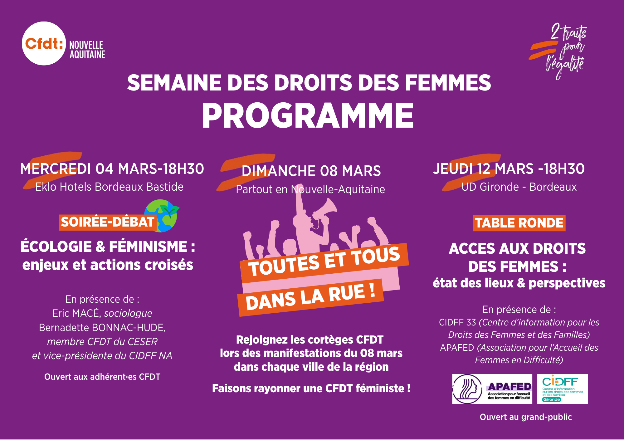 Ensemble le 4, 8 et 12 mars 2026 !