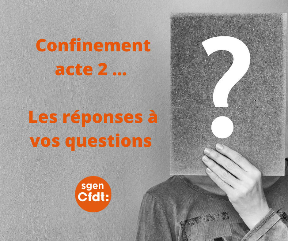 Voici à nouveau une période exceptionnelle, avec un nouveau confinement. Les questions sont nombreuses. Le Sgen-CFDT alimente régulièrement des articles de type « Foire Aux Questions » à partir de vos questions. Cet article recense les questions et vous redirige vers les réponses apportées.