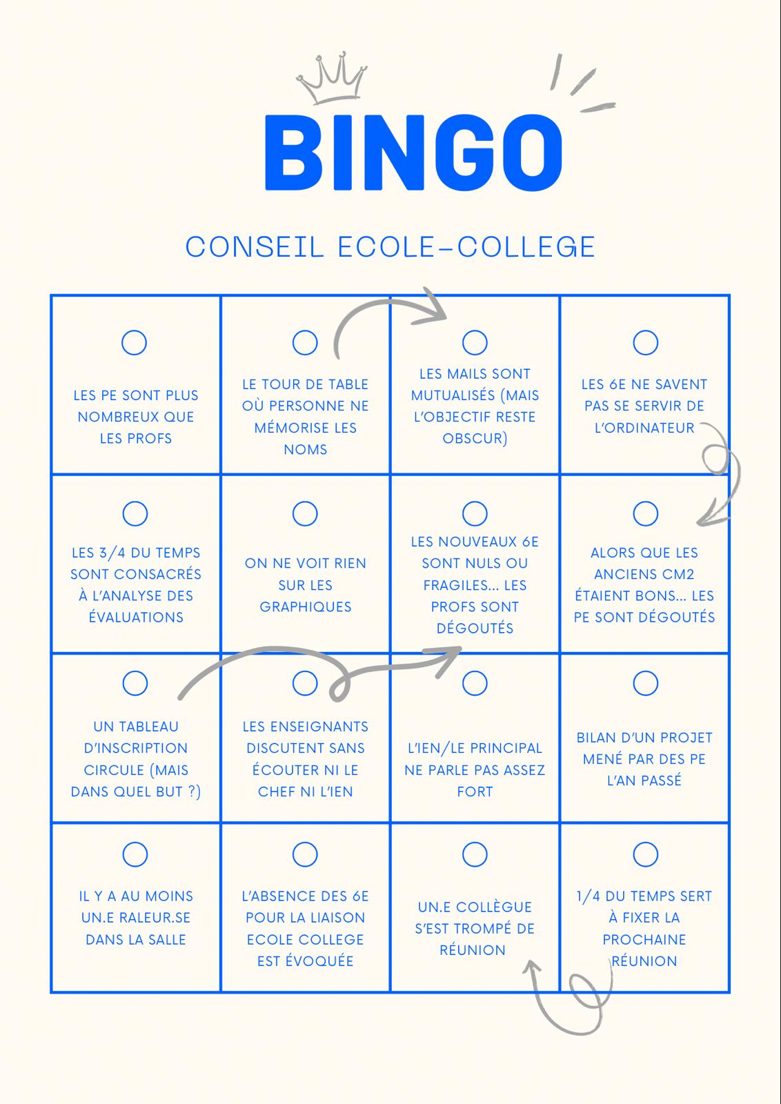 Pour passer le temps pendant cette réunion, nous vous proposons un bingo.